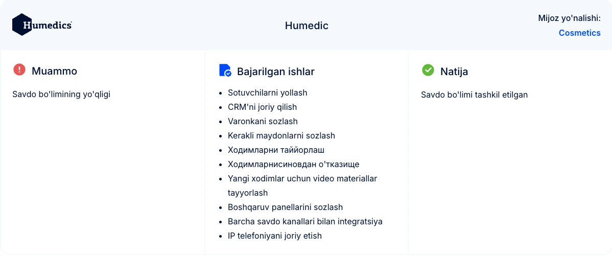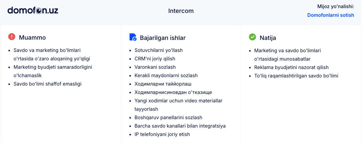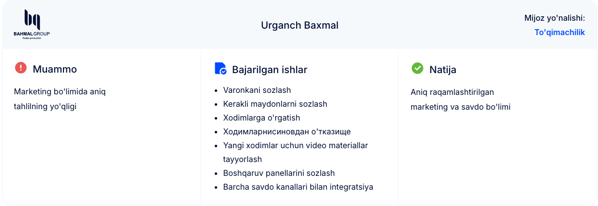 Biz 50 dan ortiq loyihalarni amalga oshirdik va qanday yechimlar kerakligini aniq bilamiz.